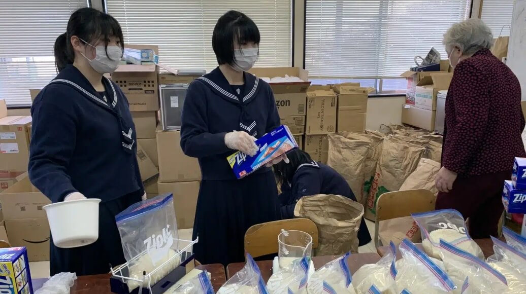 1970年(昭和45)、深沢守三神父様が中学校卒業記念として 平和の鳩を飛ばす少女像「飛翔」を贈呈してくださいました。