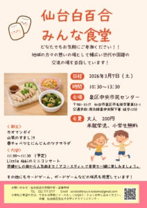 3/7(土) 第5回 仙台白百合みんな食堂開催のお知らせ